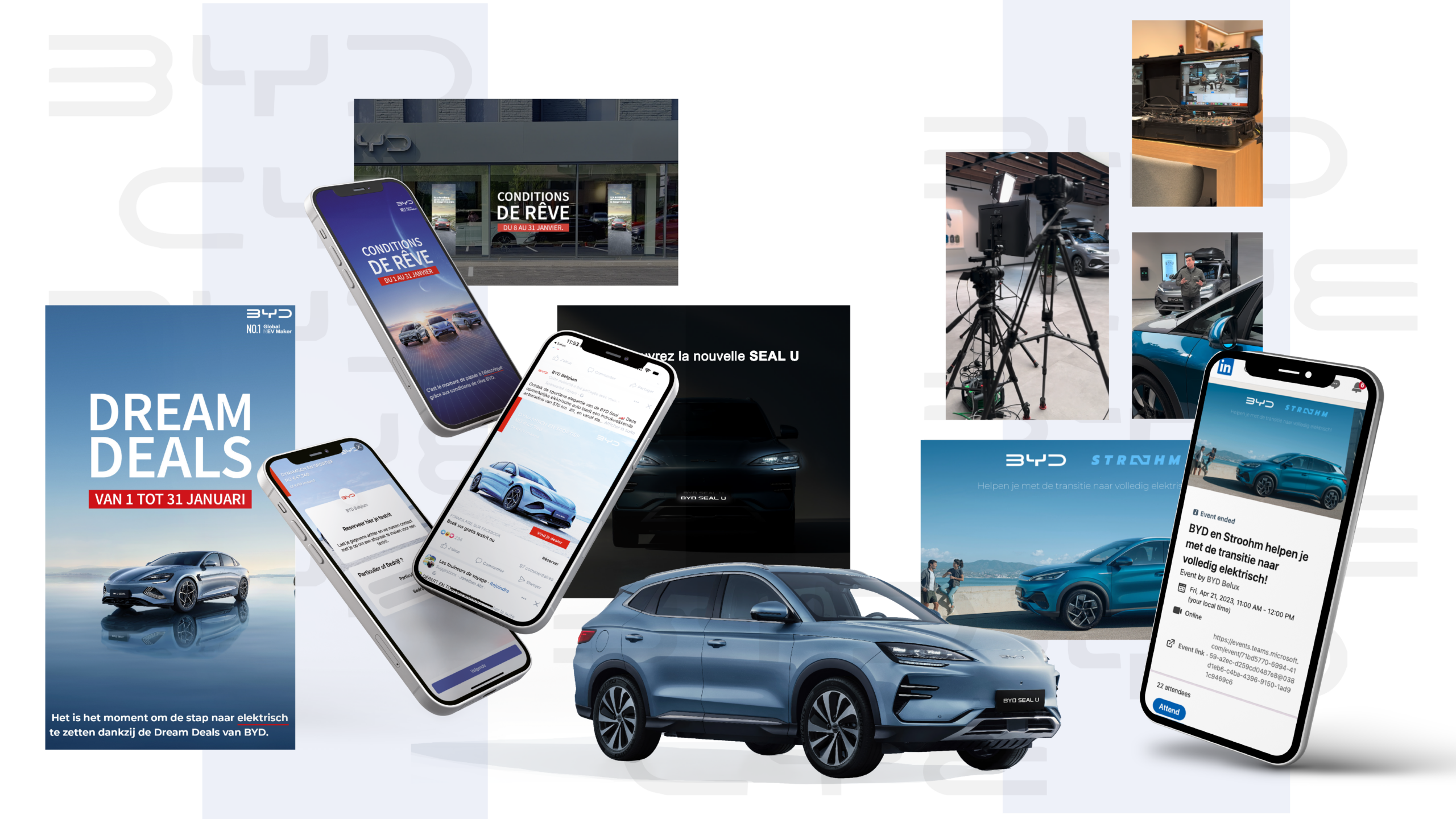 Pour ce live streaming sur LinkedIn, nous avons rassemblé le responsable de la flotte de BYD et un expert en bornes de recharge. Ensemble, ils ont répondu aux questions brûlantes sur la gestion de flottes électriques et la simplicité d’installation des bornes. Le tout diffusé via Teams, avec une interaction en direct qui a captivé l’audience !